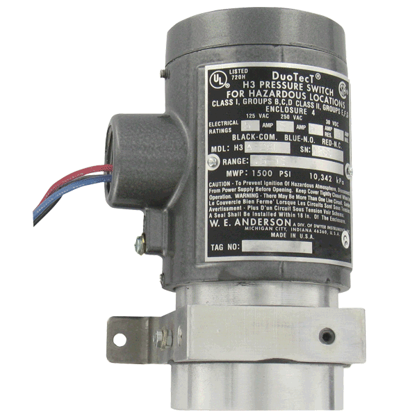 SÉRIE H3 Antidéflagrant , robuste, unité industrielle a un nouveau design unique qui offre une sensibilité à des pressions différentielles aussi bas que 10 pouces d'eau (254 mm W.C.), mais gère pression totale de 1500 psi (103 bar). Contrairement à des commutateurs de pression différentielle communes qui utilisent un transfert de mouvement de type piston, la série H3 utilise un arbre de transfert de mouvement de rotation qui empêche un changement de pression totale de provoquer un changement de point de consigne. Les rendements unitaires environ 5% zones mortes de la plage, avec zéro point de consigne décalage dû à la variation de la pression de travail. La friction est réduite au minimum et une répétabilité accrue en permettant ressort de plage d'agir directement sur la plaque diaphragme. La conception du diaphragme à roulement maintient une surface efficace constante pour réduire davantage le frottement. Diaphragme est autorisé à "siège", permettant l'application de la pression nominale maximale, jusqu'à 1500 psi (103 bar), soit sur le port haute ou basse pression, sans dommage. La fonction de sur-course spéciale empêche le serrage excessif de la vis de réglage de la distance. Choisissez une chambre 316SS optionnelle pour les fluides à base d'eau et d'eau ou pour les applications plus dures.