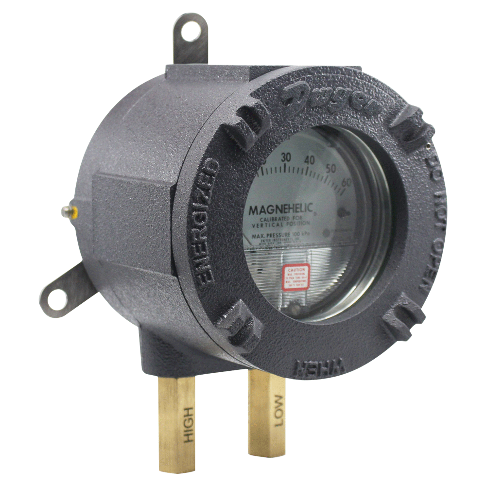 Le populaire capteur de pression différentielle SÉRIE AT-2000 Magnehelic® est maintenant disponible dans une enceinte ATEX anti-flamme avec la nouvelle série AT-2000 certifiée ATEX. Cette jauge peut indiquer des pressions positives, négatives ou différentielles et est exacte dans les 2%.