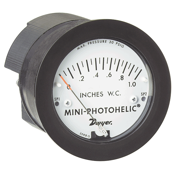 Le Mini-Photohelic MP, est un manostat basé sur le principe compact du manometre Minihelic II. Il est conçu pour mesurer des pression différentielles négatives ou positives. Tout comme le Photohelic il est équipé de 2 contacts